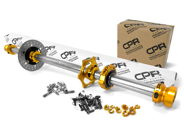 Rear Axle Assembly *PLEASE NOTE – SOME PICTURES SHOW THE 3-BEARING MODEL, YOUR STANDARD KIT IS A 2-BEARING ITEM. IF DESIRED A THIRD BEARING MAY BE PURCHASED FROM US AND CAN BE INSTALLED. 6 pieces Partially assembled (2x Bearings and hangers, 1x Sprocket hub, 1x Brake hub and disc, 2x Wheel Hubs) *FIT KIT Axle Fitting Kit (Contains: 4x Axle Keys, 3x M8x50 Countersunk Bolts, 6x M8x50 Countersunk Bolts, 3x M8 washers, 6x M8 Nyloc Nuts, 6x M6x25 Bolts, 6x M6 washers, 6x Nyloc nuts)