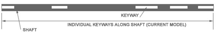 The axle shaft has keys set in different locations for 4 stroke or 2 stroke use. For four stroke use (in-board sprocket), you will not require the keyway second from the right. Orient your axle assembly so that when you look at the rear of the kart, it is set as per the diagram above.