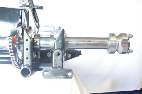 b. Slide the Sprocket hub and sprocket over the axle from the right side with the protruding flange facing toward the left side of the kart and over the key in the centre keyway.