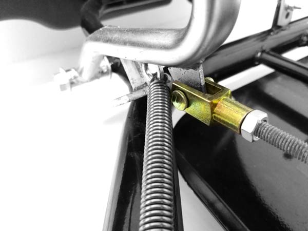 Screw the brake rod brackets onto the rod. Secure the rod to the Master Cylinder by placing the bracket over the lever mounting hole and inserting the pin. Secure the pins by pushing the split pin through the hole in the pin and split.