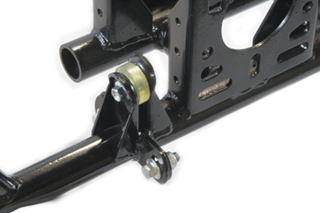 d. Insert the two M8x25mm bolts into the top mounts, by inserting through the rear crash bar, then through an M8 nylon spacer, then through the chassis bracket. Secure with M8 nyloc nut.