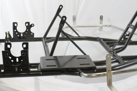 Fit the floor pan to the chassis using the 6x M6x16 Phillips bolts. Thread bolt from under the kart, through the pan, through a plastic spacer, through the chassis brackets and through an M6 washer. Secure using an M6 nyloc nut. Repeat for all locations.