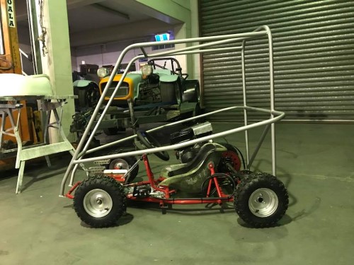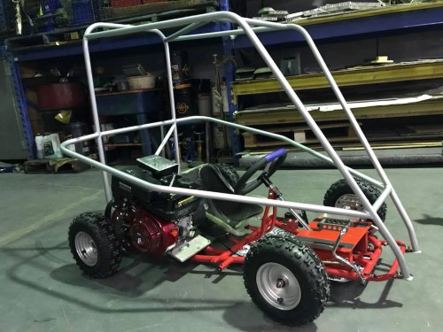 Well Chris Barry’s son certainly knows!  Chris has built this fine race kart – converted with CPR components to become an off-road bruiser, with all the safety gear included as well as a custom roll cage – neat hey?!
