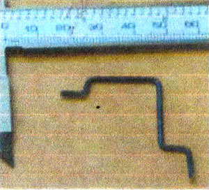 5. Bend rod as shown.  Actual dimension will vary from motor to motor.  If you need to re-bend, heat it first.  If you break it you can use an 0.060″ to 0.075″ steel wire/rod.