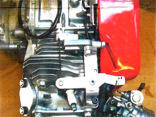 3. Insert Cable guide into Cable Guide Plate and attach to engine as shown using the long socket head bolt.  Note: Guide Plate is machined differently on both sides for use on GX120s or GX160/200’s