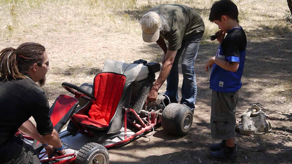 So the kart got another rebirth in 2013. Stripped down , painted, new tyres, new floor pan, new seat padding and linner. Shiney alloy and bright red with black trim. And that same old flogged hard Honda motor. And 2 new drivers with grins on their faces, waiting with their father, uncles, and grand father for their turn.
