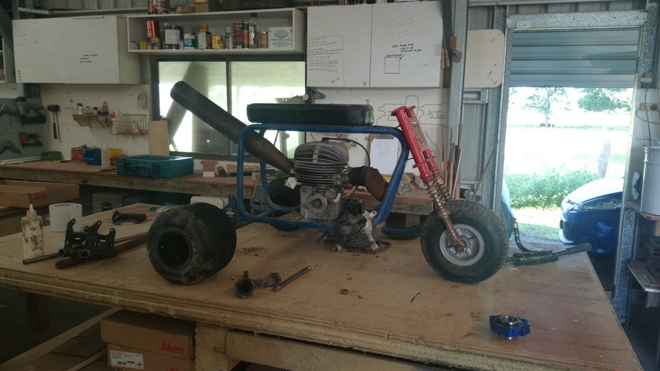 My name is Ben, I am building an old bike into a high powered trike and will be using CPR parts in the rear end including brakes, hubs and bearing carriers, here is a pic of the bike being dummied up to get a shopping list together to start the project. Ill keep you posted throughout the Build
