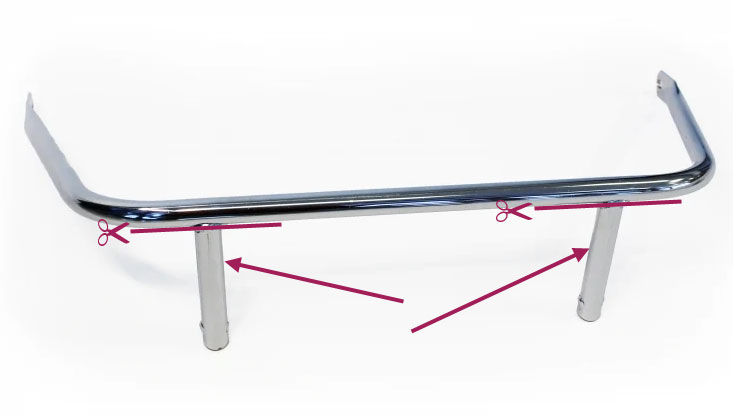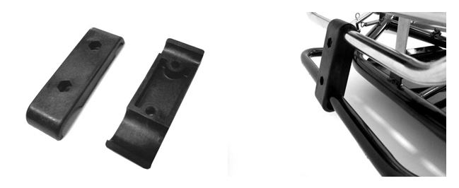 It’s very simple. All you need to do is remove the two uprights on the front crash bar, then fit a pair of clamps.