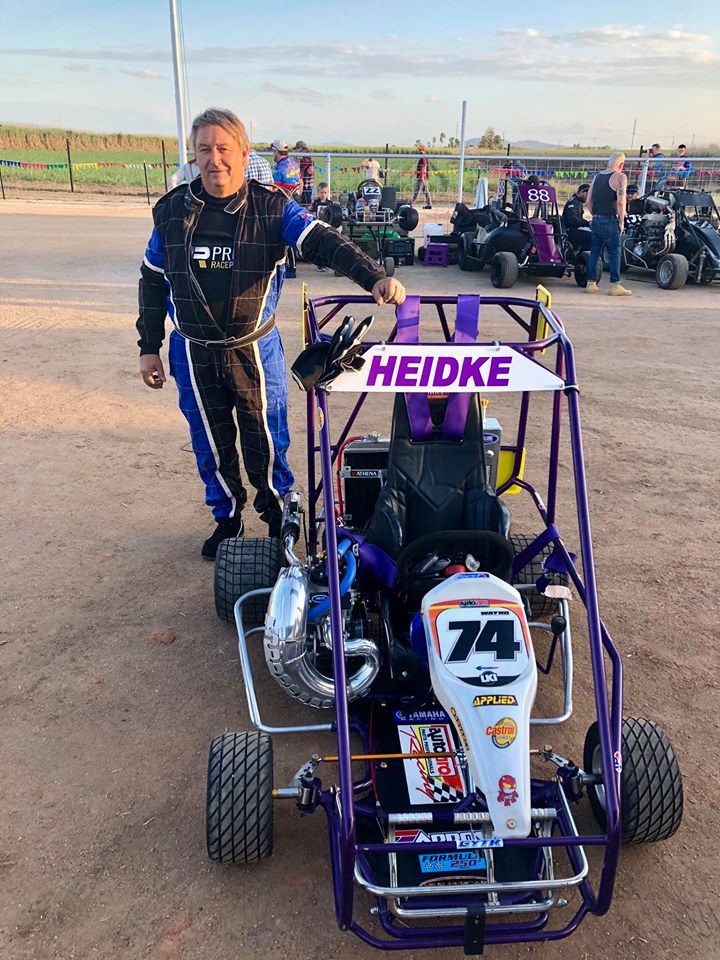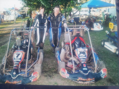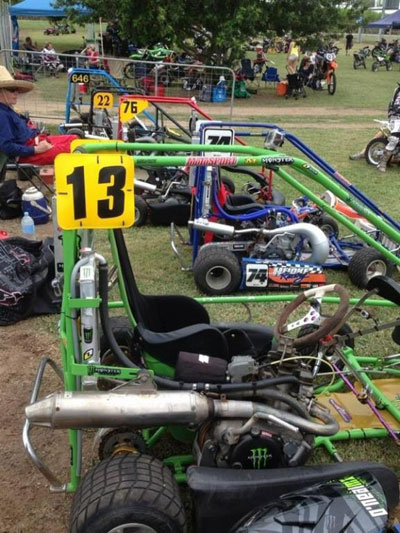 Caged race karts with 2 or 4 stroke Dirt bike engines by Wayne Heidke