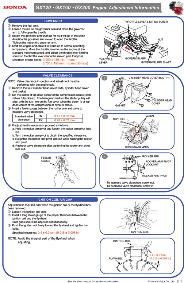 1. Rresetting the governor on GX200 and Clone engines