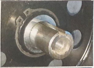 Install the ¾” x 2 ¼” O.D. x 1/16” thick spring/shoe retaining washer.