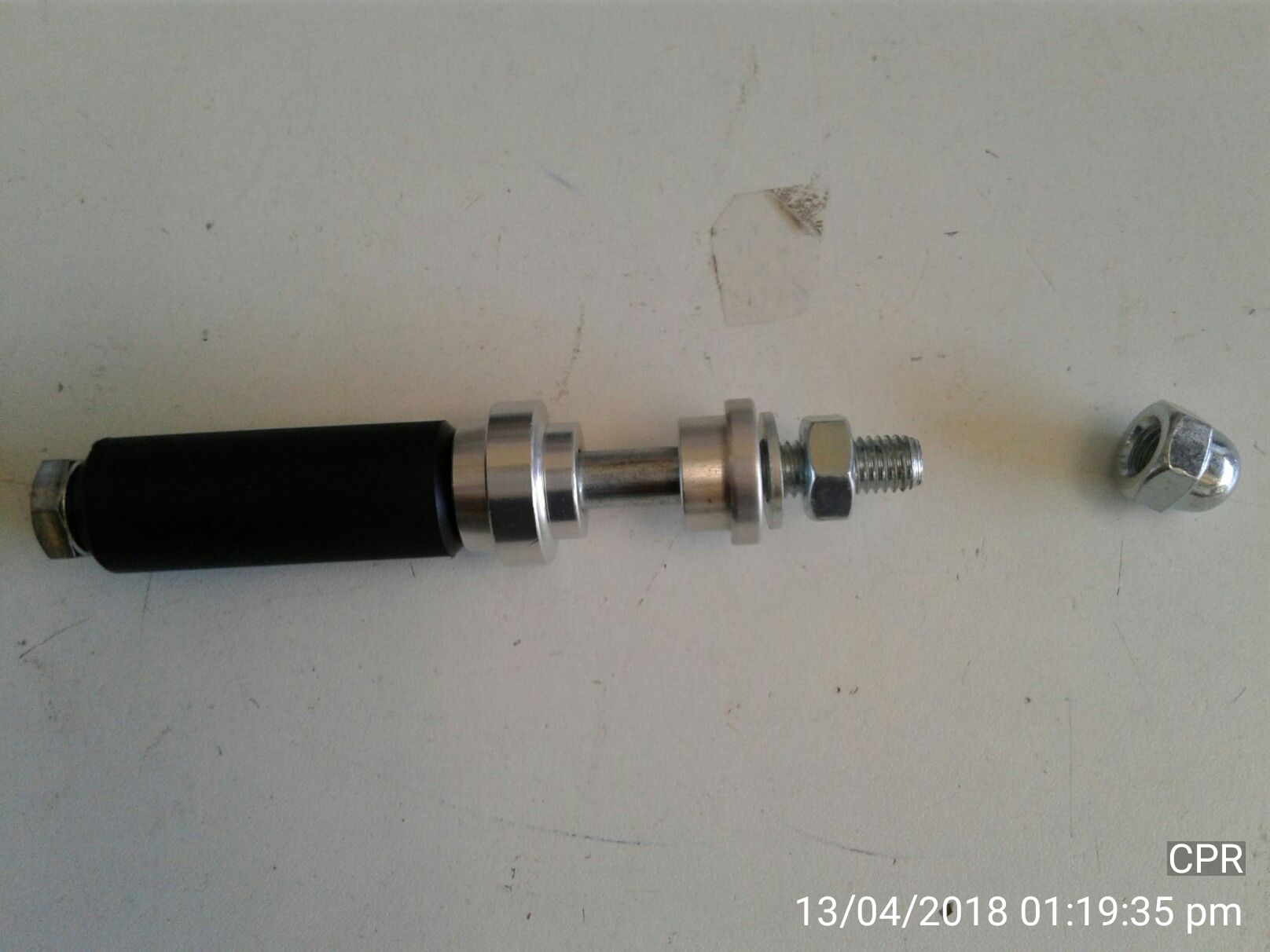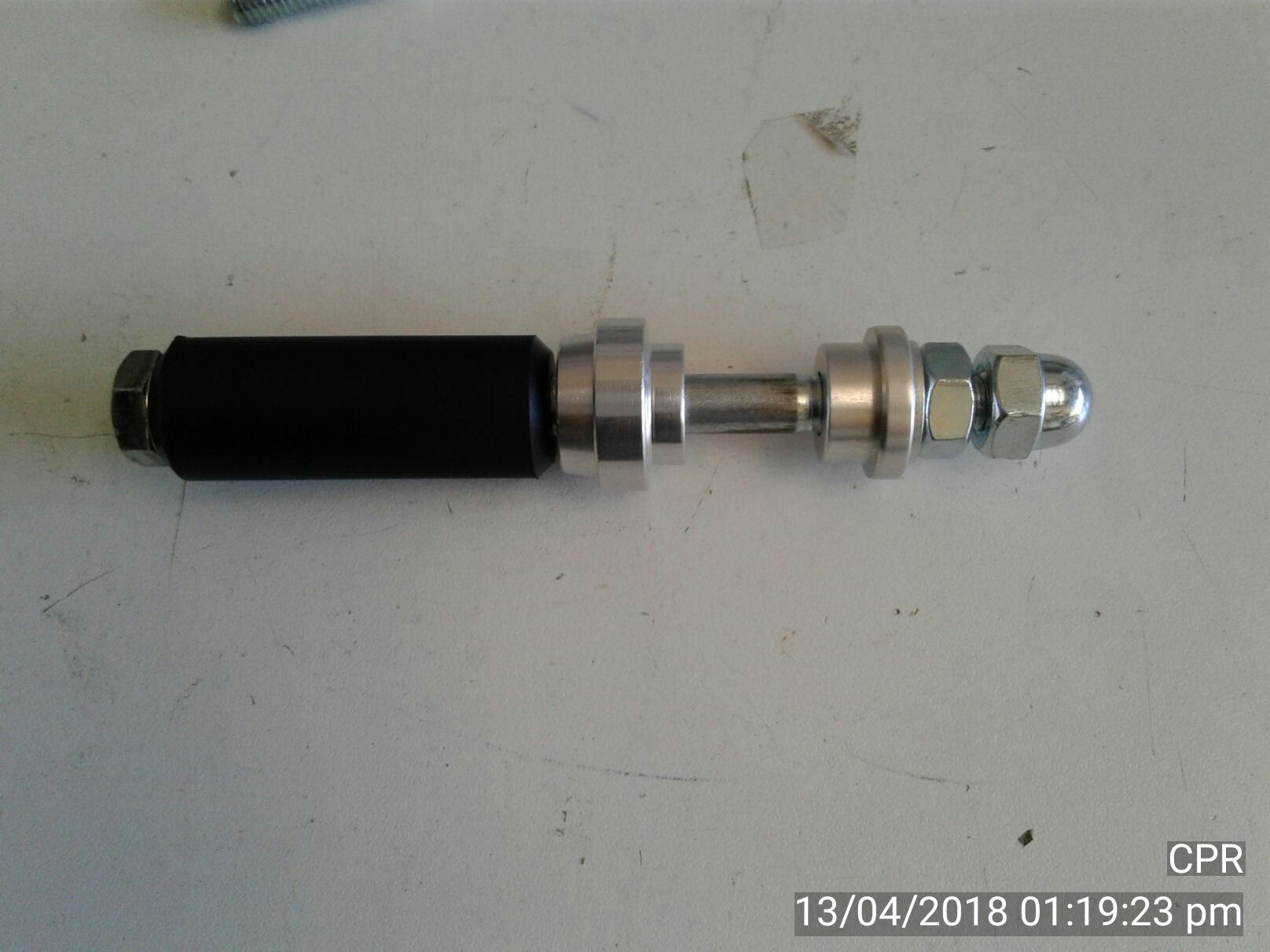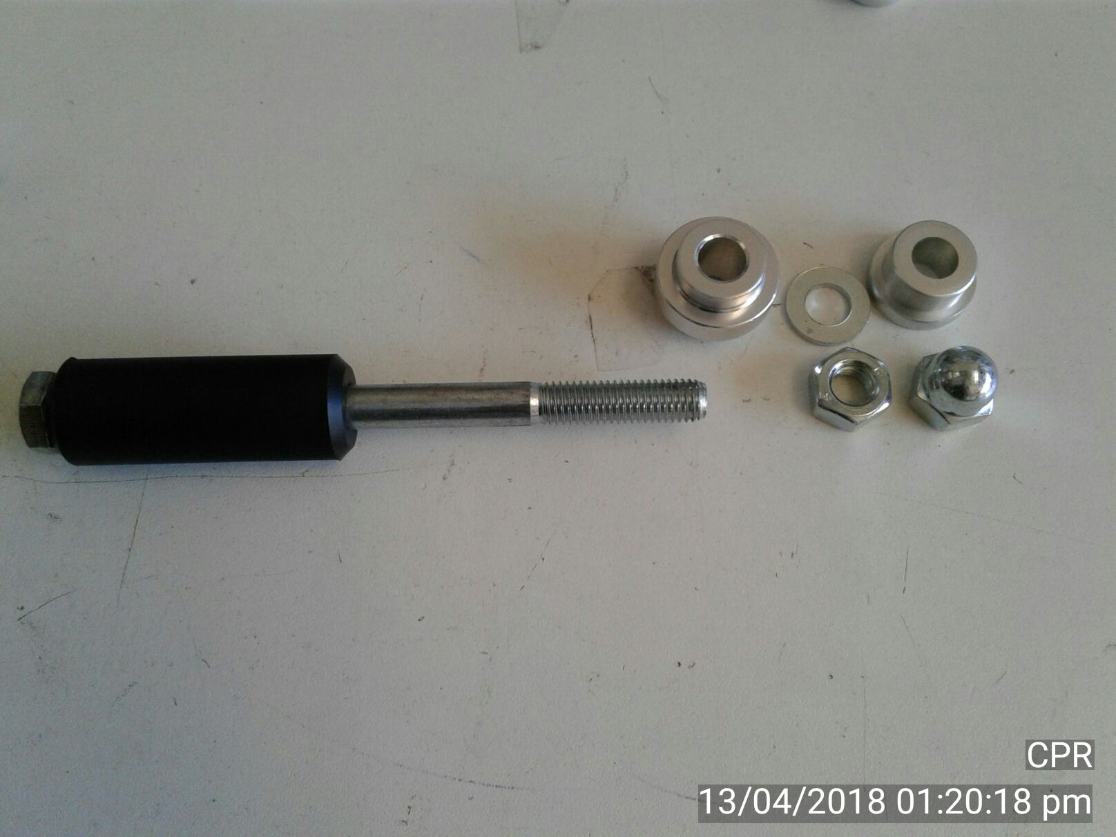 Slide the double sided aluminium bush over the bolt and down against the rubber insert, with the larger tapered flange first.