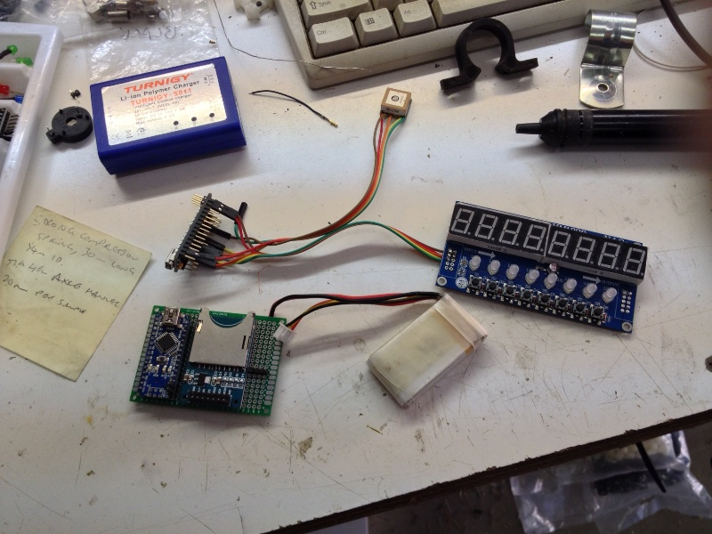 I designed a small circuit board to take an arduino nano, an SD card, a USB header to upload new firmware to the Arduino as I develop it, some headers to plug the GPS antenna and the 7 seg display into and a LiPo battery.