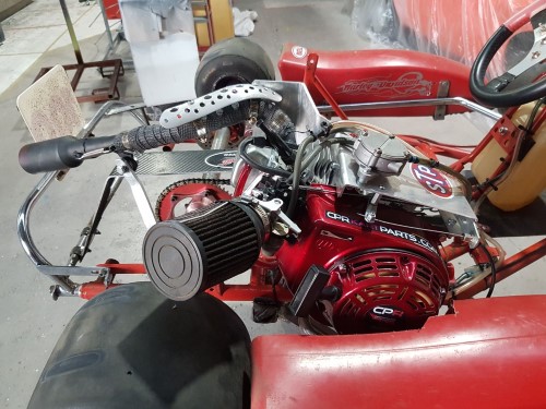 When Matt Spears got fed up with Jay Spears Vangard 6hp being beaten by the faster Honda GX200 clone, he decided the best policy was not to fight them, but to join them!  Matt received his new CPR Competition engine and spend a few hours getting it all set up nicely on Jay’s kart.