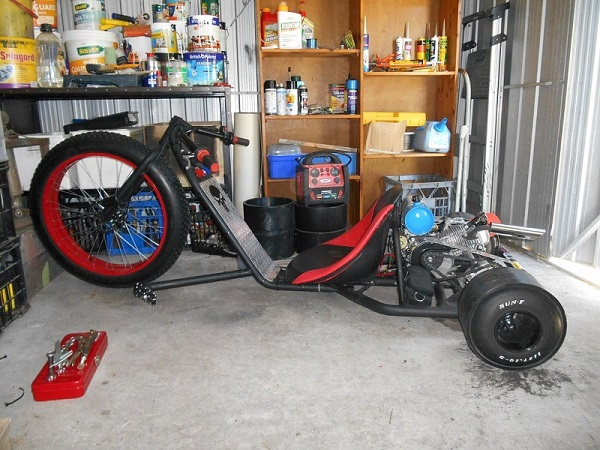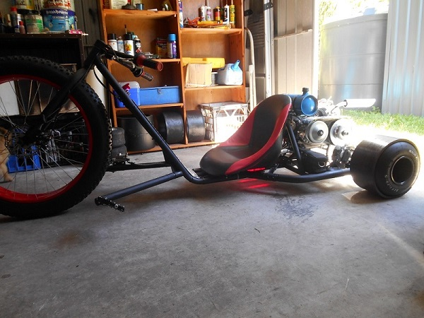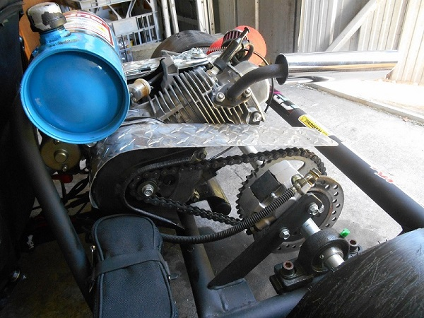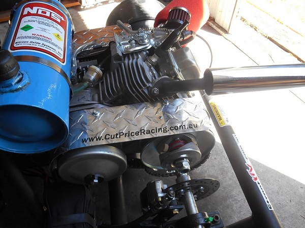 The Difference….. YAHOO, engine can now slow or fast idle without trike trying to take off without its rider, BE CAREFUL on the first few times you go to move off or get into position cause if you hit that throttle a tad to hard trike will be all crossed up, this TC kit has amazing low down power ( hence the word Torque ), the power supply to the rear drive is a lot broader than it was with a OFF or ON centrifigal clutch so VERY easy to do BIG drifts in total control or tight little figure 8,s. Cant notice any difference to top end speed but the industrial area i often go to on a Sunday isnt that long and i dont REALLY want to risk running into a brick wall just for a “speed” test.