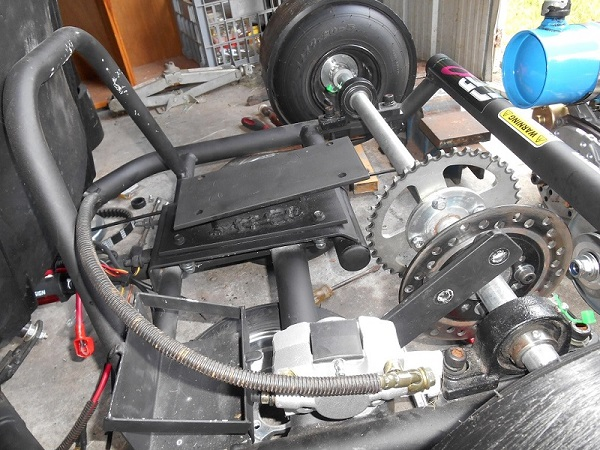 The only prob i had was that i made engine mount LEVEL on the bench and it wasnt till after i sat welded mount on trike that i realised the top of mount WASNT level with rear axle which would put a bit of strain on the chain, so put a long spirit level across top of rear tyres and slightly packed uderneatneath wheels till axle was dead level (crappy concrete floor) then checked the ORIGINAL engine mount base plate, AHA, it was never welded level from the factory, it was out of level quite a few degress- no wonder chain was ALWAYS noisy. Modded newly made engine mount with a cut off wheel gap and rewelded. ALL GOOD.