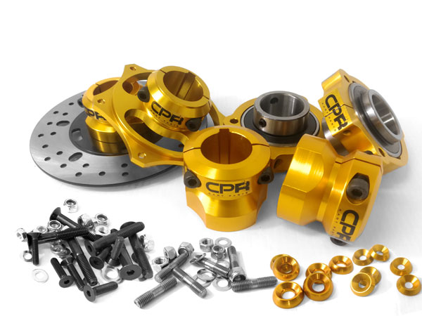 40mm AXLE ASSEMBLY. EVERYTHING you need to bolt-on and go less the axle shaft – including ALL the nuts and bolts WITH ANODISED COUNTERSUNK WASHERS!