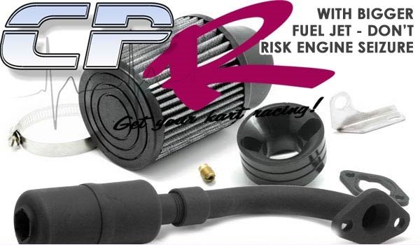This fantastic pack includes all the gear you’ll need to increase horsepower via your inlet and exhaust breathing. Comes with venturi, air filter, choke bracket and upgraded fuel jet to ensure no lean-out conditions.