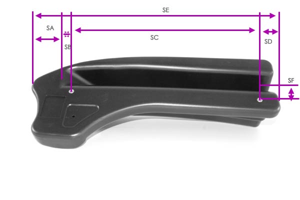 SF – distance from rear bolt hole centre to centre of divet (cutout for bar) = 75mm