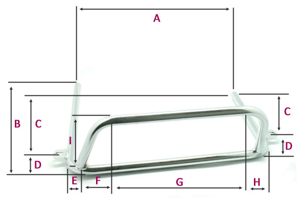 I – Height of upright (centre of tube to centre of tube) – 110mm