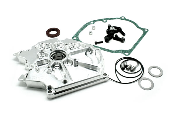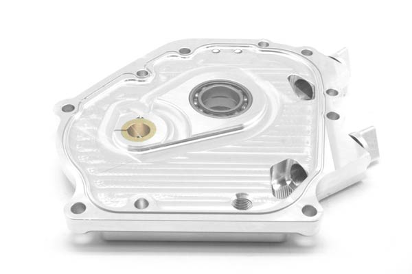 It has the attention to detail and good looks that have come to be expected of ARC’s billet products. It features side by side dual ball bearings that support the crank and gives it another fulcrum point to help eliminate any crankshaft flexing. It has an integral o-ring along the perimeter in it’s machined groove that guarantees a good seal. 4 solid pin receptacles mate with solid dowels to increase mating shear strength.