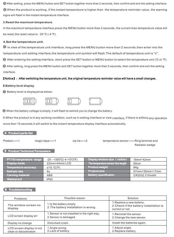 1x up to 300 degrees C Temp Gauge with TEMP ALERT, MAX-TEMP Recall.