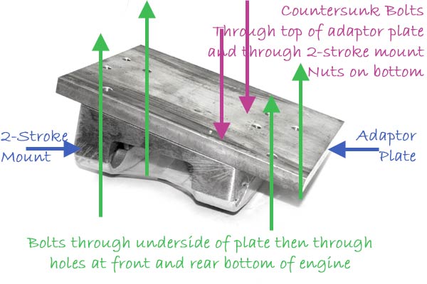 Simply drill 4 holes for your existing engine mount and sandwich between your existing mount and the engine.  Perfect for converting 2-stroke karts to 4-stroke.