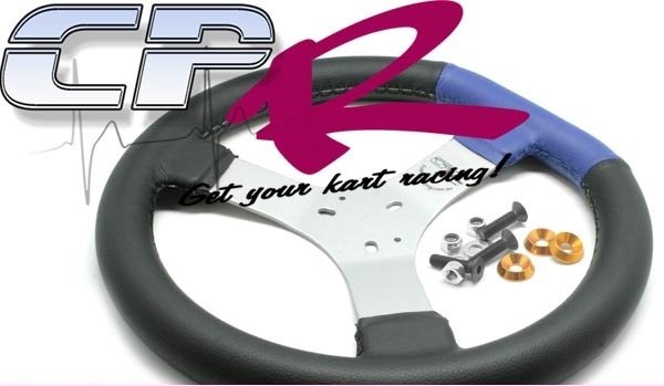 Steering Wheel Flat Top Stiched Blue with Gold Anodised Kit