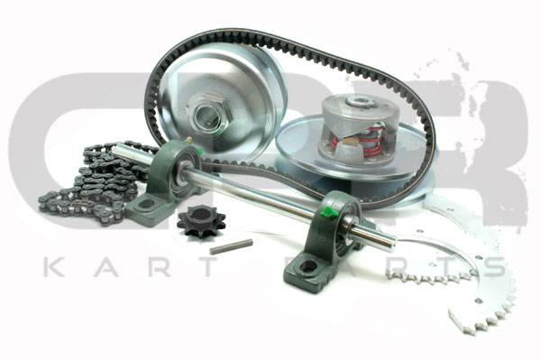 Torque Converter Clutch Complete Kit for Engines 9hp and Larger 25.4mm (1″) bore with Jackshaft, #35 Competition Chain, Sprockets, Bearings, Belt