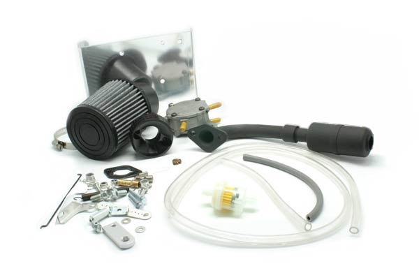 This kit replaces Air Intake system, upgrades the fuel system to an external tank and high flow fuel pump, upgrades exhaust system and includes all springs and connectors necessary for a complete change-over. Also includes polished aluminium professionally welded deflector and mount plates. Your engine will look fantastic after this upgrade!