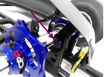 b. Fit the sprocket guard with the hole facing forward. The bracket should line up with the seat mount hole on the upper right side seat upright. If it does not, simply bend the sprocket guard to match.