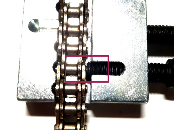 7. Slowly wind the Screw in to push the chain pin into the chain.
